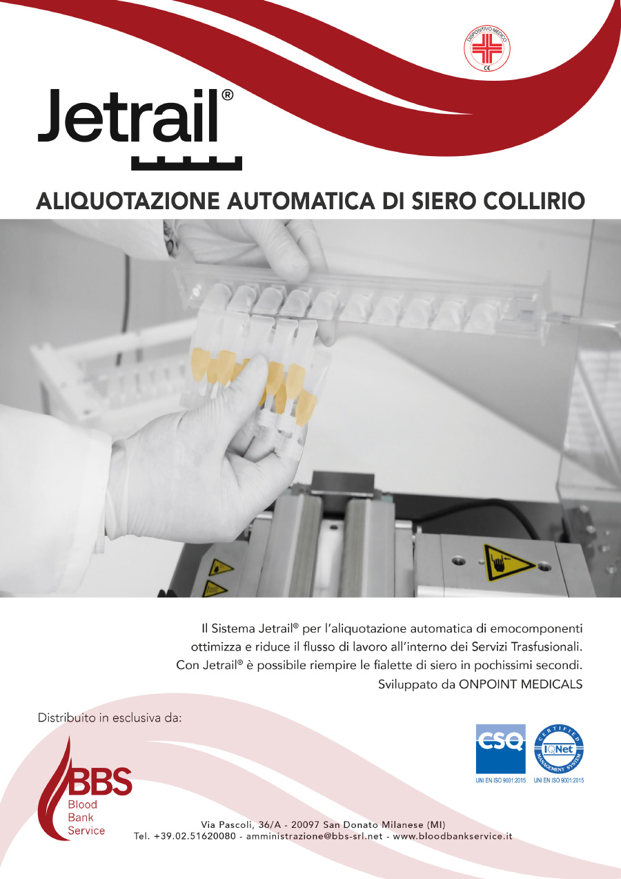Il Sistema Jetrail® per l’aliquotazione di emocomponenti ottimizza e riduce il flusso di lavoro all’interno dei Servizi Trasfusionali.