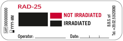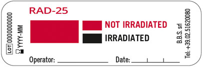 Un cambio di colore dell’indicatore, da ROSSO a NERO, indica che il prodotto è stato correttamente esposto alle radiazioni ionizzanti.