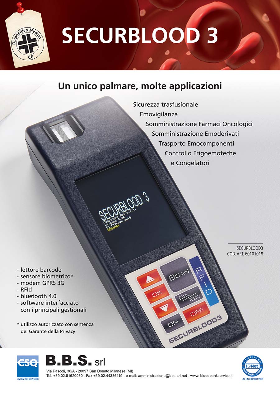This device, interfaced with major SIMT software, verifies the proper match “blood bags – patient” in the hospital ward, guaranteeing transfusion safety and blood monitoring.