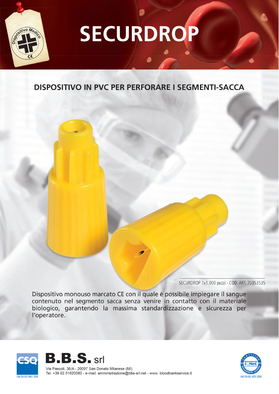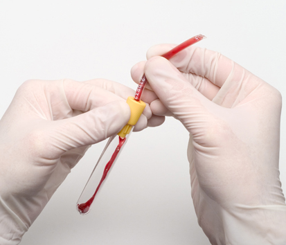 Dispositivo monouso marcato CE con il quale è possibile impiegare il sangue contenuto nel segmento sacca senza venire in contatto con il materiale biologico, garantendo la massima standardizzazione e sicurezza per l'operatore.