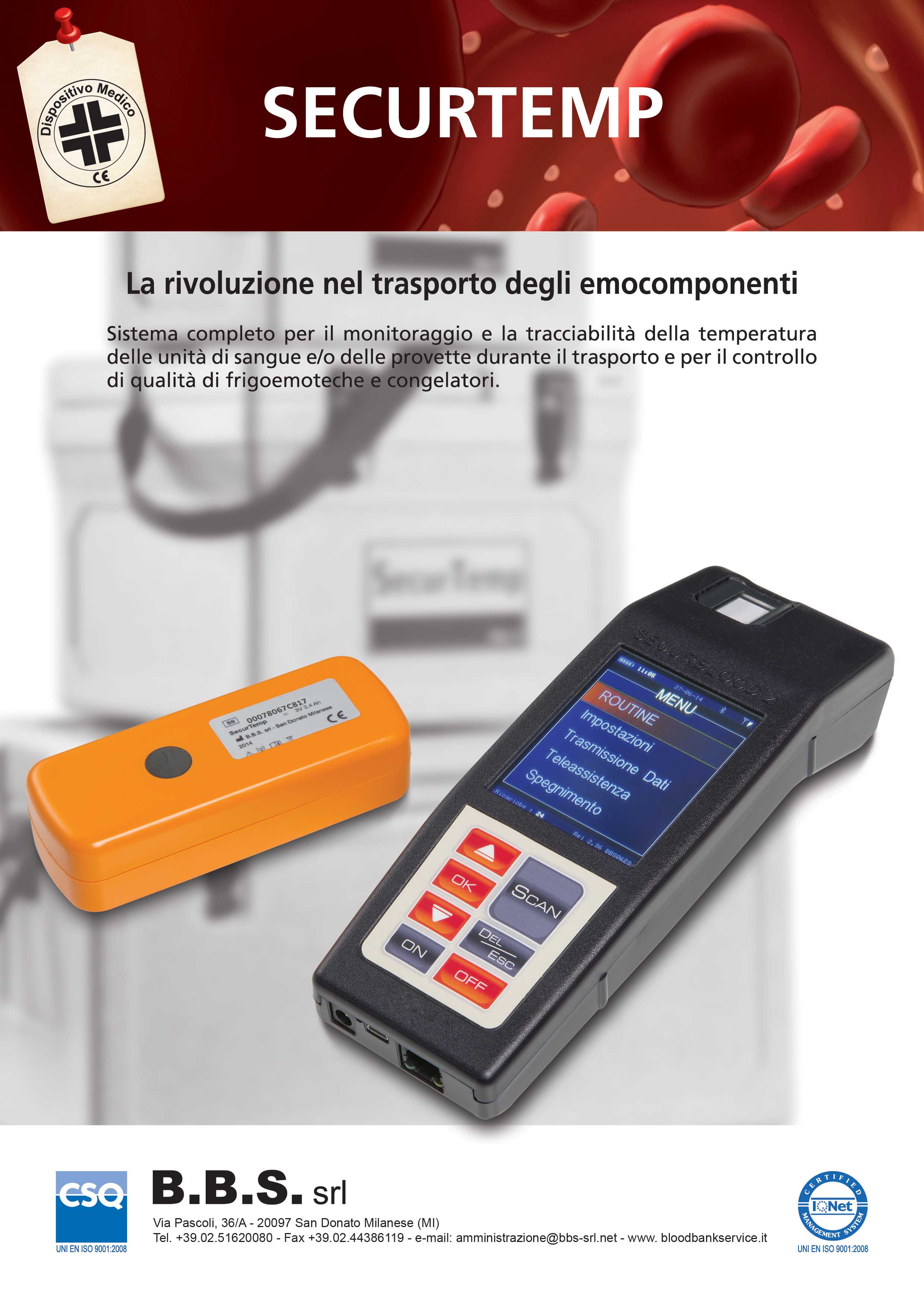 Sistema completo per il monitoraggio e la tracciabilità della temperatura durante il trasporto delle unità di sangue e/o delle provette.